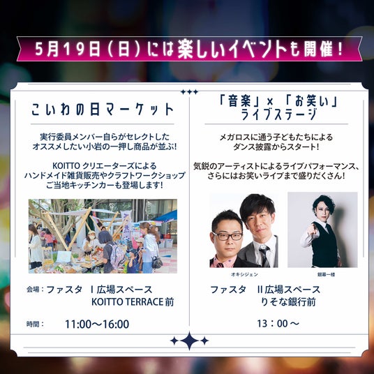 ~5月19日(日)にはマーケットや音楽&お笑いライブイベント同時開催~