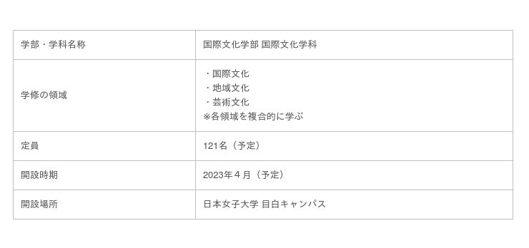 日本女子大学(東京都文京区、学長:篠原聡子)は、2023年4月に新たな学部「国際文化学部(仮称)」の開設を予定しています。本学初の国際関係分野の学部設置になります。