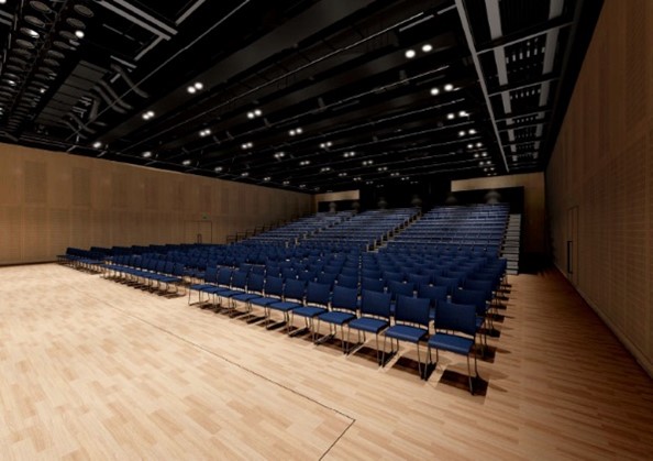 「中日ホール&カンファレンス」は、名古屋市の中心部に位置する「栄」に建築中の「中日ビル」の6階に位置し、オフィス、ホテルや商業施設を含む複合施設内の多目的ホール&カンファレンスです。