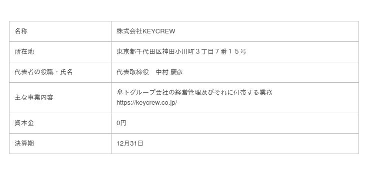 株式会社KEYCREW(本社:東京都千代田区、代表取締役:北原一樹)は、2021年4月1日付けで株式会社STOCKCREWへ商号変更をしました。また、単独株式移転の方法により、当社を株式移転完全子会社とする株式会社KEYCREW(本社:東京都千代田区、代表取締役:中村慶彦)を新たに設立したことをお知らせします。