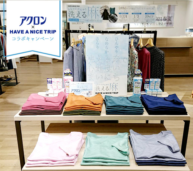麻は涼しい素材だが、お洗濯・お手入れが難しいと感じている人も多い。ハヴァナイストリップの人気オリジナル素材「洗える麻」は、暑い夏を涼しく過ごせるロングセラー素材。この素材を使った商品を長くきれいに着ていただくために『アクロン』の「洗っても洗っても新品感が続く※」特長に注目。お洗濯の頻度が高くなる夏に向けて、洗える快適を店頭で打ち出すことで、暮らしに役立つ提案を強化していく。※20回洗濯時、伸びヨレが元に戻ること。縮み・色あせ・毛玉など既にできたダメージを元に戻すことはできません。