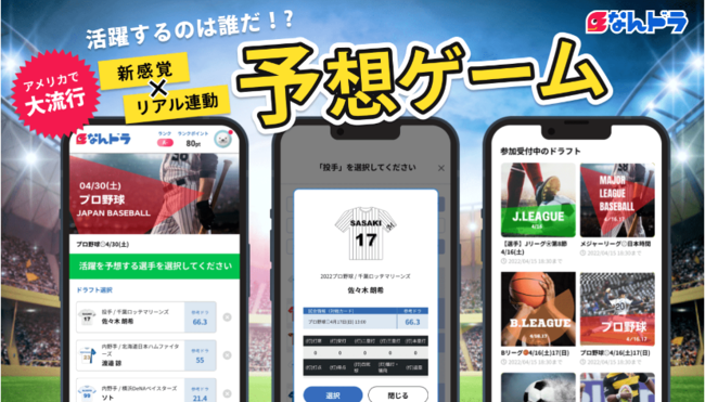 イベント前に友人や全国のライバルと活躍選手を予想し、イベント中は加算されるポイントで熱狂を増幅させ、イベント後はユーザーランキングや対戦結果を振り返って楽しみます。多くの関係者によって作り出されるイベントを、ファンの方がもっと長く、深く、広く楽しむための再演出に挑戦します。