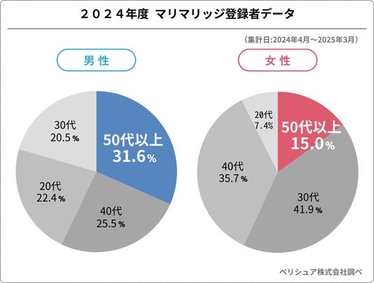 直近1年間(2024年4月~2025年3月)の「Marri Marriage」アクティブユーザーを見ると、全体の約17.7%が50代となりました。