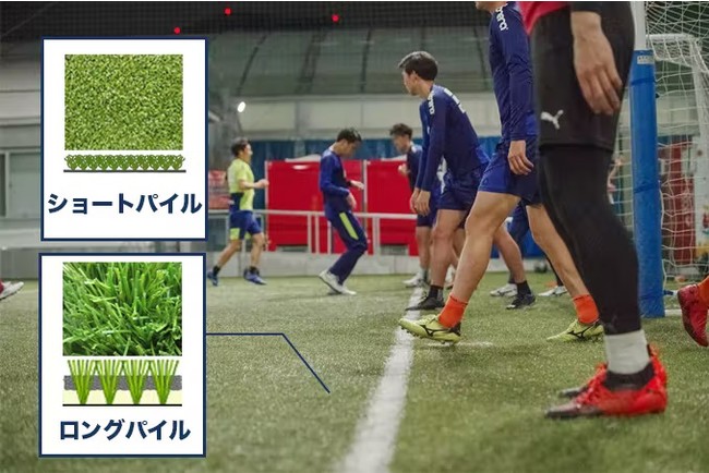 人工芝施設の際のアスファルト舗装もロングパイルコートでは行わず、どちらの人工芝も次の施設でも再利用できるように設置します。
