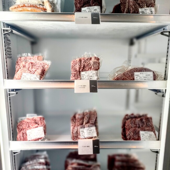 酒屋で酒を購入し店内で飲むように、冷凍庫にずらりと並ぶ和牛の精肉・ホルモンも、購入後店内でお楽しみいただけます。
