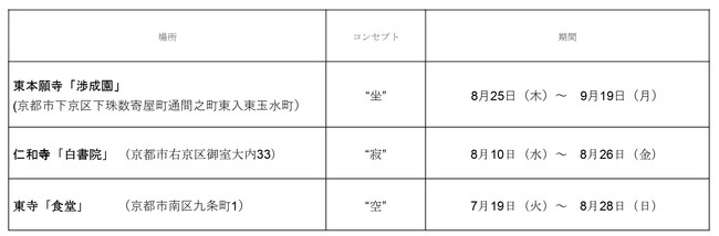 ※ 本個展は無料です。拝観料、開門時間など詳細につきましては、各寺院公式サイトをご確認ください。