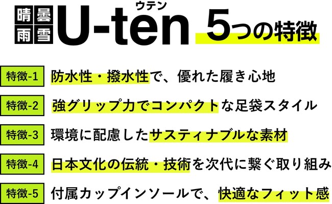そんな想いから生まれたのが、全天候型足袋スニーカー『U-ten』(ウテン)です。