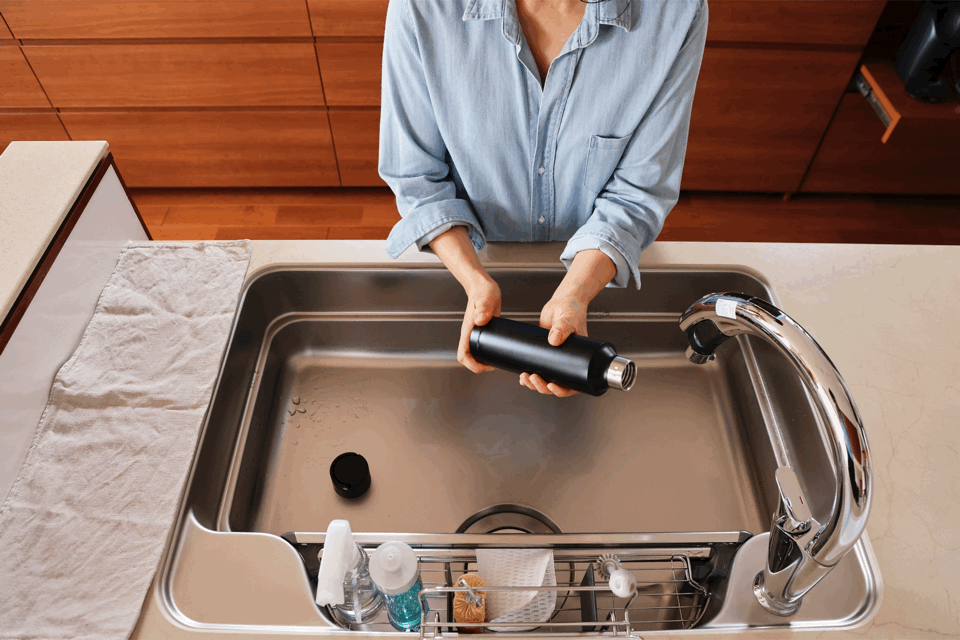 ボトル内の雑菌を上から下から洗い流して清潔を保ちます。