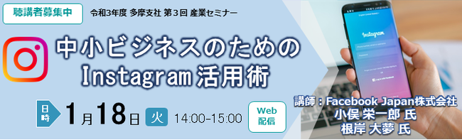 公益財団法人東京都中小企業振興公社多摩支社(東京都昭島市)では、「中小ビジネスのためのInstagram活用術」をZoomを使用したオンライン配信で開催します。