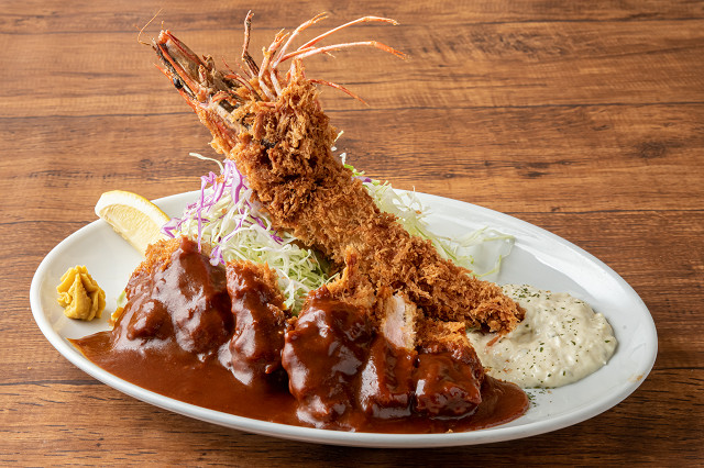 ボリューム満点の天然有頭エビフライは圧巻!