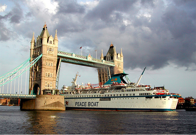 1983年の設立から船旅を通じて国際交流を続けるピースボートは、ウクライナに本社を置く船会社の「オリビア号」(旧:カレリア号)を1995年からチャーターし、計16回のクルーズを実施、のべ1万名を超える方が乗船しました。また、一度の航海で約3ヵ月間の時間を共に過ごしたウクライナ人の乗組員と乗船者の間で、多くの交流が生まれました。