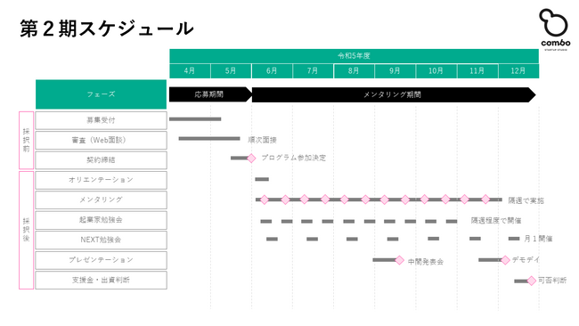 新規事業を創出し成長させるスタートアップスタジオ「combo」は、次世代の経営者を育成するプログラム「comboアントレプレナー」の参加者の第2期募集を開始します。