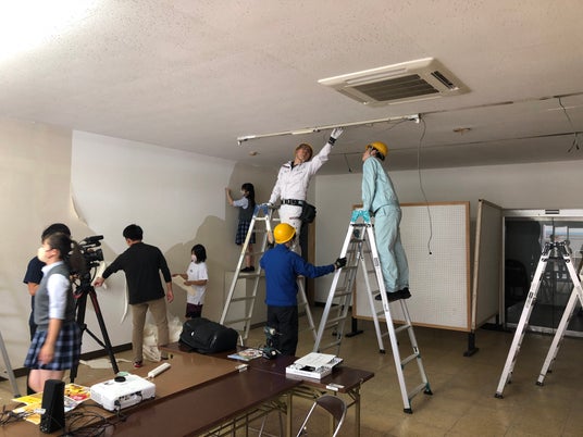 高梁城南高校の電気科生徒による蛍光灯などの電気工事
