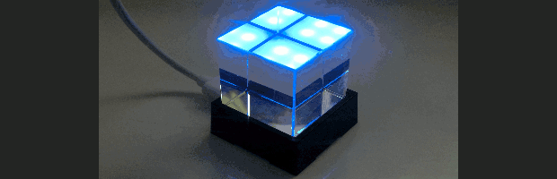 換気が必要な状態に応じてクリスタルガラスキューブの色を無段階に変化させます。