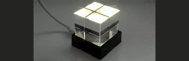 そして内蔵するセンサーが換気不足を検出するとクリスタルガラスキューブの色はその程度に応じて緑~赤へと無段階で色が変化します。カフェやオフィスの雰囲気を損ねる事なくさりげなく換気をうながす製品となっています。