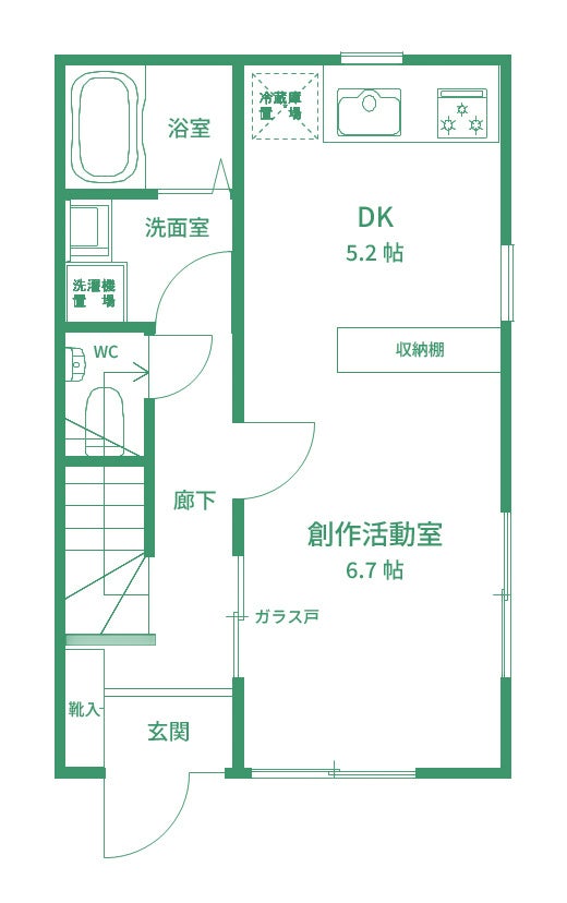 各シェアハウス棟に、創作活動で汚しても良い共用の創作活動室を用意するとともに、一定の条件下で併設の地域交流施設を創作活動や作品発表等に利用可能