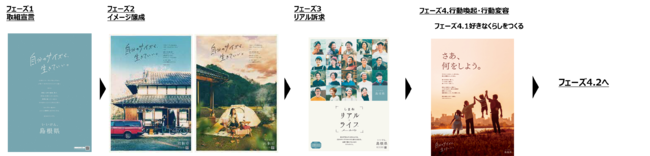 2020年に『いいけん、島根県』プロジェクトを開始し、移住に向けた行動を起こしていただけるよう、フェーズ1「島根県の取組を宣言」、フェーズ2「しまね暮らしのイメージを醸成」、フェーズ3「19市町村のリアルな暮らしを発信」と段階的なプロモーションで島根県への移住の魅力を多くの方にお届けしてきました。2022年1月からはフェーズ4.1「都会地ではできない暮らしを“つくる”楽しさ、自由度を発信」し、今年2022年秋以降は新たにフェーズ4.2「都会地では感じれなかった働く“幸福感”や“満足感”を発信」を加え「しまね暮らし」の魅力を発信してまいります。
