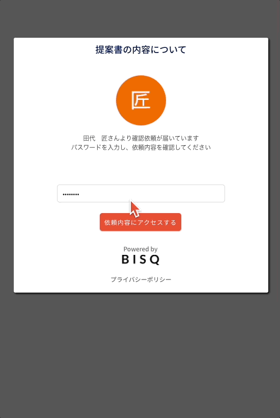 メールに記載のURLやQRコードからBISQにアクセスし、依頼者から送付された内容を閲覧