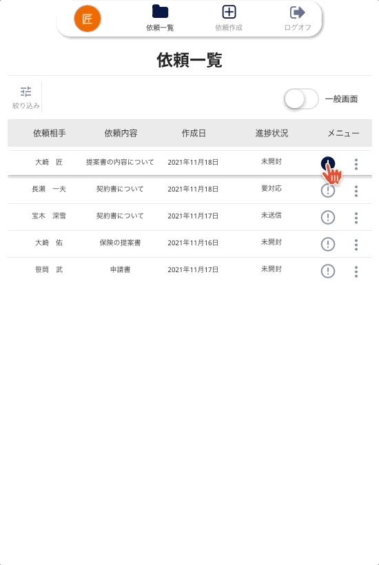 依頼相手の連絡先がわからなくても、QRコードを生成し相手に手交することで、依頼内容への回答ができます