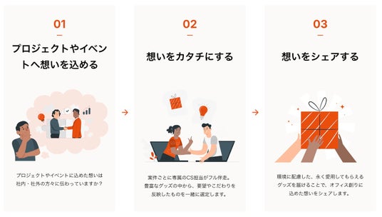 企業のカルチャーは、社員が生むエピソードの蓄積によって構築されていきます。積み重ねていくエピソードがカルチャーの輪郭をシャープにし、企業の「らしさ」を作り上げていくのだと思います。カルチャーグッズは、高品質な【素材、加工、デザイン、ストーリー】を、手間なくワンストップな購入体験として提供します。