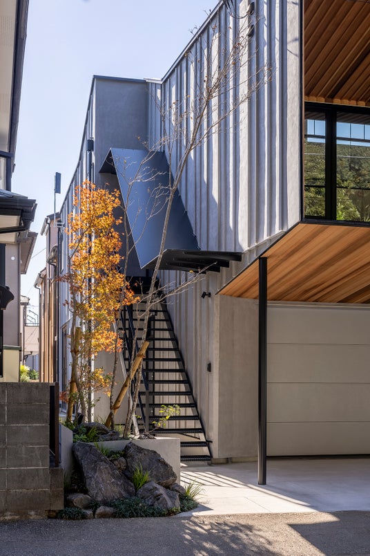 アプローチ部分には紅葉など四季を感じられる日本庭園のような植栽を配し、通行人にも潤いを与える空間としました。