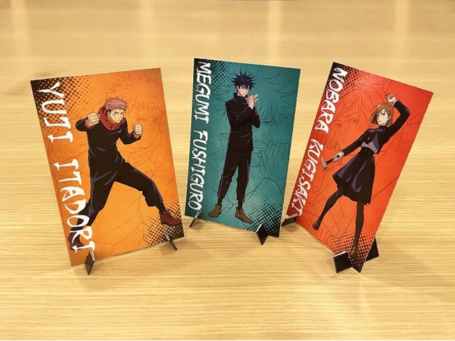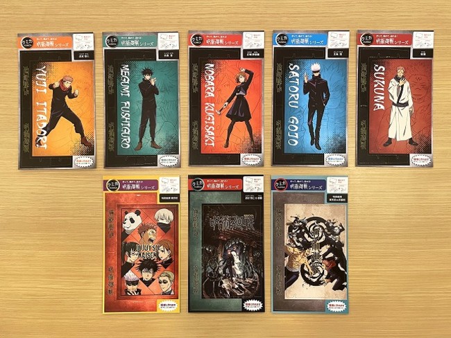 前回販売したプロバスケットチーム琉球ゴールデンキングスとのコラボシリーズは、購入者から「メッセージ書いて手軽にプレゼントできました!」や「全種類購入し机に飾っています!」と好評いただきました。今回販売する「呪術廻戦」シリーズは、虎杖 悠仁&宿儺、呪術高専 東京校&京都校、呪術高専 東京校、虎杖 悠仁、伏黒 恵、釘崎 野薔薇、五条 悟、宿儺の全8種類の商品を販売します。また、「呪術廻戦」が大好きなファンにオススメしたいコンプリートセットは全8種類の商品が一回の購入で手に入るお得なセットです。