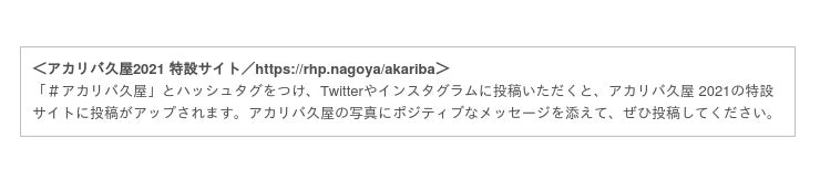 「アカリバ久屋」は、訪れた皆様が仲間や大切な人への感謝の気持ちを振り返り、ポジティブな想いが生まれる場所になるように願いを込めました。