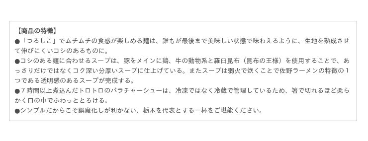この度はせたが屋前島社長を通じてご縁をいただき、ご当地ラーメンチャレンジに参加させていただくこととなりました。当社としても、まさに「チャレンジ」だと思っております。佐野ラーメンは佐野の人々の生活に密着してきたラーメンですので、ラーメン激戦区、東京の中心地である東京ラーメンストリートにて、麺屋ようすけのラーメンをお客様に提供できる喜びをかみしめながらスタッフ一同、一杯一杯心を込めてお客様にホッとしていただけるようなラーメンを提供していきたいと思います。毎日食べても飽きないさっぱりとした味が特徴の佐野ラーメンを是非この機会にお楽しみください。