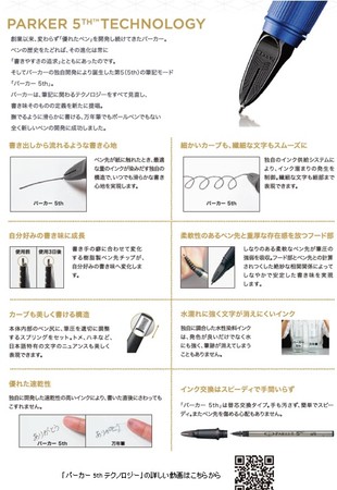 「書きやすさの追求」を続けるパーカーが、筆記に関わるテクノロジーを全て見直し、書き味そのものの定義を新たに提唱するために誕生したのが「パーカー 5th テクノロジー」 。このパーカー独自の技術を搭載した「パーカー インジェニュイティ」は撫でるように滑らかな書き味と万年筆、ボールペン、ローラーボール、ペンシルのメリットを凝縮した機能性から第5の筆記モードと位置付けられています。