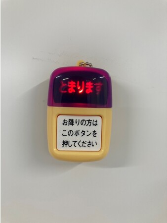 第一段のおもちゃは株式会社トイズキャビン(本社:静岡県静岡市、代表者:代表取締役 山西秀晃、以下トイズキャビン)製の、「バス降車ボタン2」です。『がちゃがちゃ』は大人から子供まで幅広い世代に人気があり、その市場規模は300億円を超えるほどとなっております。バスの車内に『がちゃがちゃ』を設置したら面白いのではないかという事で今回立案しました。バスの降車ボタンを本当は押してみたい、遠慮して押せない、でも押したいそんな方は夢がかないます。毎日、いつでも押し放題です!