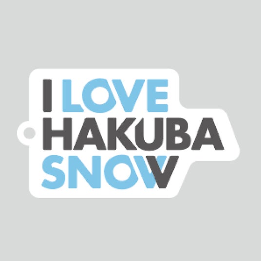 ホワイトのアクリル素材に、HAKUBA、NOZAWAONSENの文字を掛け合わせたデザイン。