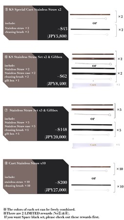 定番カラーの"Copper"と、本プロジェクトにて新発売の"Space black"の2種類のステンレスストローをお買い求め頂けます。
