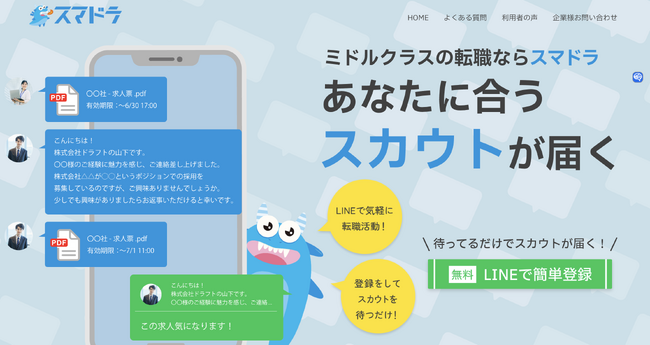 LINEであなたに合うスカウトが届く「スマドラ」https://suma-dora.com/
