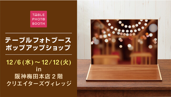 株式会社P.I.(ピーアイ)(大阪市都島区中野町、代表:竹谷直子)が運営する「テーブルフォトブース」は2023年12月6日(水)~12日(火)まで、阪神梅田本店2階クリエイターズヴィレッジにポップアップショップを出店。