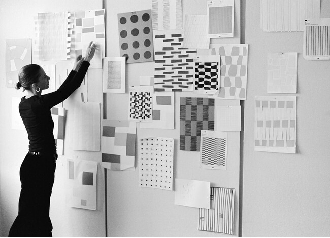 ローラ・ビルデとリネア・ブレールの2人がデザインを手掛けた「SHE」は、テキスタイルや彫刻、ペインティングなどのクラフトの分野で十分な評価がなされてこなかった、1930年代、1940年台の女性作家たちへのリスペクトから生まれたカーペットコレクションです。「SHE」は、現代に生きる女性デザイナーの道を拓いた女性作家 -- Agnes Martin、Aino Aalto、Anni Albers、Ray Eames、Sonia Delaunay、Sonja Ferlov Mancobaらの卓越した仕事を残した先人たち -- を讃えるコレクションです。彼女たちの技法に魅了されたデザイナーの2人は、手で描いたり、切り貼りのような構成をもとに、6種類のパターンをデザインしました。デザインは、さまざまな織り方によって生み出された特徴的なパターンや実験的なフォルム、シンプルでグラフィカルな絵画の解釈から生み出されています。不完全なディテールをカーペットデザインに取り入れながらも、シンプルでオーガニックな見せ方とすることで、それぞれのカーペットにはナチュラルな感覚とアーティスティックな自由が表現されています。「SHE」は、過去に活躍した女性作家たちへのオマージュであり、ローラとリネアは、このコレクションによって、“不完全さ”をインテリアや生活の中に取り入れたいと考えました。そこには、完璧ではない人生を受容することの大切さを伝えたい、という2人の想いも込められています。