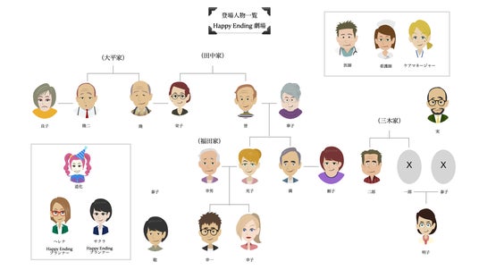 老後はひとりでは生活することができません。家族、知人のサポートが不可欠です。Happy Ending カードが話にくいコトのコミュニケーションを容易にします。