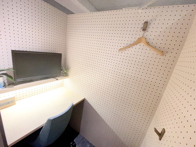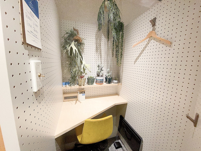 ブース内にはハンガーやちょっとした荷物を掛けられるフック、折り畳み式の荷物置きを設置。快適に過ごせる個室空間です。