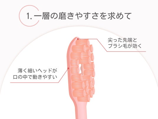 この歯ブラシは2021年に発売した「奥歯のウラまで届く穴あき歯ブラシ」を使用された方から「ブラシ部が薄い歯ブラシが欲しい」という声をいただき開発がスタート。16カ月の開発期間を経て、完成しました。