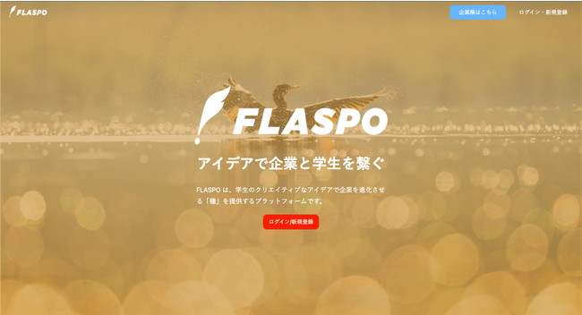 「学生の社会経験の第一歩を提供する」をミッションに掲げ、学生向けアイデアコンテストプラットフォーム「FLASPO」を運営。早期から学生に企業の事業・テーマへ興味をコンテストを通じ促進し、企業による採用・アイデア収集・PRの機会を提供する。