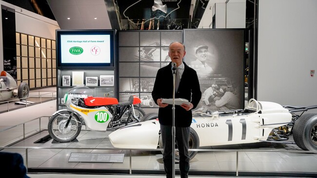 四輪及び二輪のヘリテージ文化を守るため、世界71カ国で活動しているFIVA - Federation Internationale Vehicules Anciens (本部:Villa Rey, Strada Val San Martino Sup. 27, 10131 Torino - Italy、会長:Tiddo Bresters)は、自動車の歴史および文化に於いて多大な影響を与えた人物に贈られる賞として『FIVA Heritage Hall of Fame Award』を創設いたしました。第二回目となる2022年度は世界で9名が受賞し、その一人である本田技研工業株式会社の創業者、本田宗一郎氏に対する贈呈式が、2023年2月16日、「富士モータースポーツミュージアム」(静岡県駿東郡小山町大御神645)にて執り行われました。