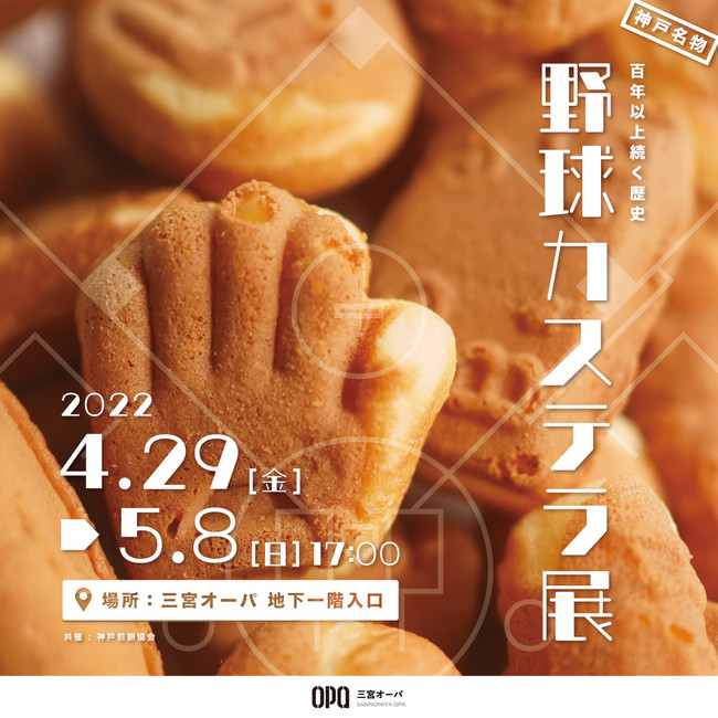 そんな知られざる神戸の100年以上も続く歴史的な「野球カステラ」を、神戸煎餅協会、野球カステラ愛好会との共催で三宮オーパ館内で展示・販売、同時にSNSキャンペーンを実施いたします。