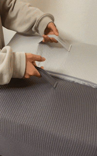 カバーはプレミアムコットンを二重に使用することで、完璧な肌触りを実現させました。快適なもちもち感触・熱を籠らせない通気性もバツグン◎さらに高弾力で足をしっかり支えてくれるから、長時間足を上げても型崩れの心配はありません。