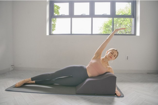 枕の傾斜を生かして、腹筋を鍛えたり背筋をぐーっと伸ばしたりできます。FOOT-UPの底面には滑り止めが付いているので、フローリングの上でもしっかりご使用いただけます。