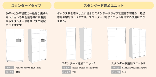 他社製品と比較して費用を抑えて導入できるので、物件規模に合わせた十分な数のボックスを導入できます。