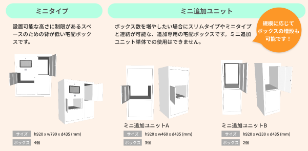 ■豊富なサイズバリエーションを展開。規模に応じてボックスの増設も可能!