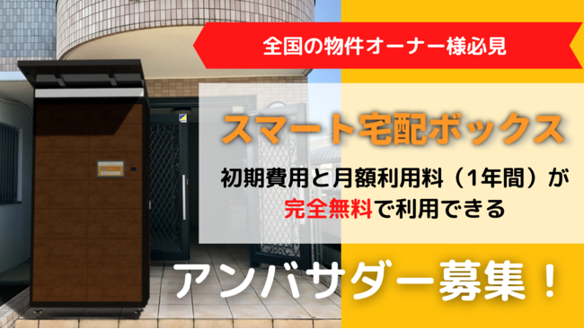 日本全国の集合住宅の物件オーナー様を対象に「スマート宅配ボックス」を、所有物件に設置いただけるアンバサダーを1物件限定で募集します。