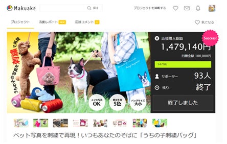 2022年、同じく応援購入サイトMakuakeにて「うちの子刺繍バッグ」のクラウドファンディングを実施し、皆さまのおかげで大成功を修めました。