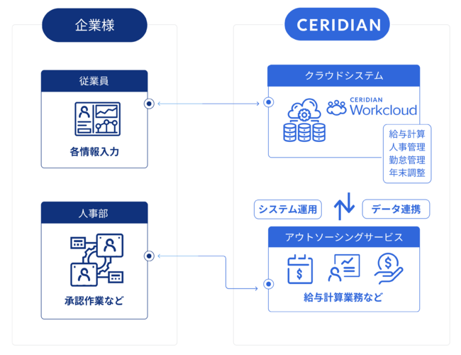 Ceridian Dayforce Japan 株式会社は1994年10月(2015年よりAscender傘下、2021年よりCeridian傘下)より、給与計算・人事管理関連業務のアウトソーシングサービスを提供してまいりました。自社開発のクラウド給与・勤怠システム「Workcloud」(※)と給与計算業務代行の併用で、200~3000名規模の国内企業様、外資系企業様の課題を解決、業務改善をサポートしております。
