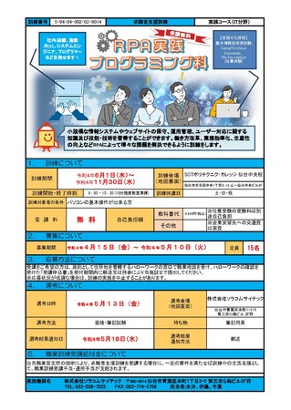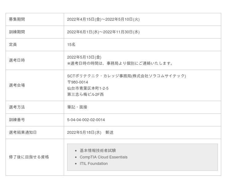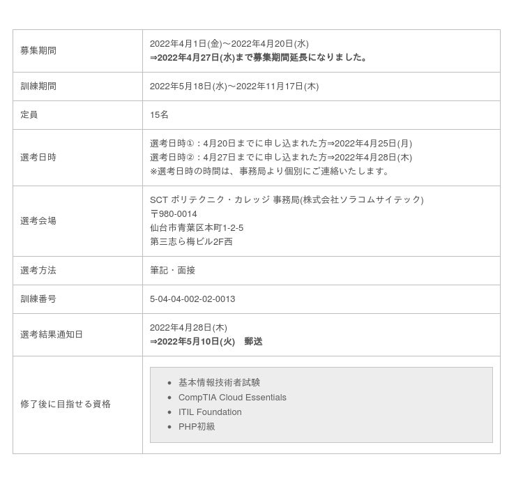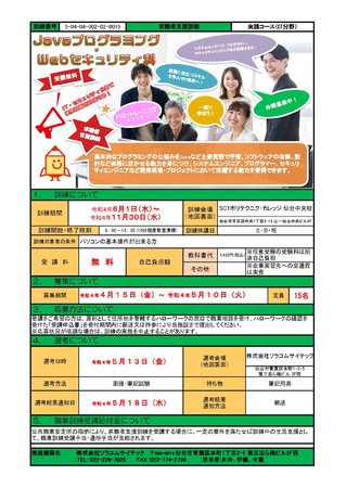 仙台市でIT人材教育サービス・サイバーセキュリティソリューションを提供する株式会社ソラコムサイテック(本社:宮城県仙台市、代表取締役:高橋洋人、以下「ソラコムサイテック」)が展開する求職者支援訓練5月開講コース「社内SE・WEB実務担当者養成科」の募集期間の締切間近となりました。