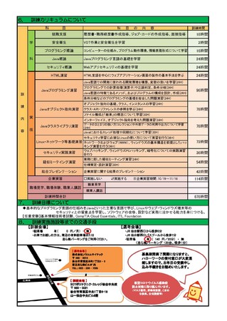 基本的なプログラミングの仕組みをJavaなど主要言語で学習、ソフトウェアの改修、設 計など実務に活かせる能力を身につけ、システムエンジニア、プログラマー、セキュリ ティエンジニアなど開発現場・プロジェクトにおいて活躍する能力を習得するための訓練内容です。